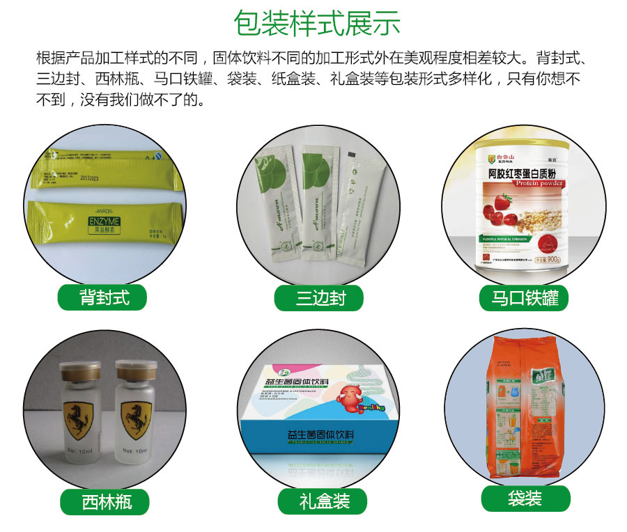 产品描述:【产品名称】 沙棘固体饮料代加工 【产品种类】固体饮料 【主要配料】沙棘粉,可根据客户需要加工定制 【加工方式】来配方加工,来样加工,来料加工,包工包料(OEM,OBM,ODM)其...